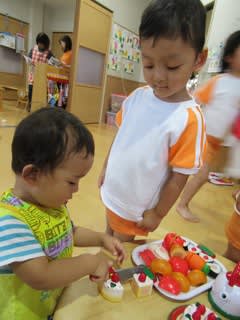 5歳児の年長さんがいることにより貸したり借りたりがとってもスムーズ