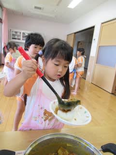 自分たちで育てた野菜を使っての夏野菜カレー作りでした(^^)