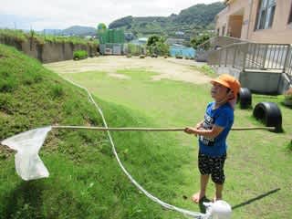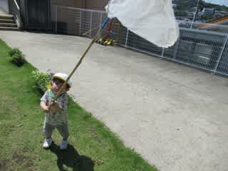 年上のお兄さんが虫取り網を持っているのを見て、