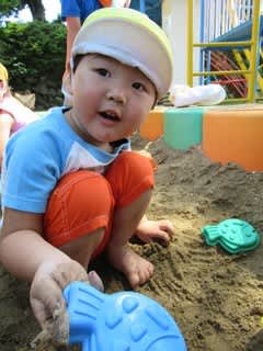 こちらでは、裸足になって・・・砂遊びを思い切り楽しみました(^^)