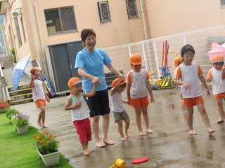 連日、晴天が続いているので水遊びを満喫しています(^^) テラスには子どもたちのはしゃぐ声。 水に入る気持ち良さを感じたり、水に顔をつけようとしてみたり・・・ 楽しさの中にも様々な学びやねらいがあります。 暑い日がこれか…