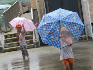 ふと見ると、以上児さんが頭を使い傘を持って来て