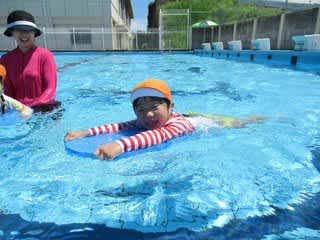 浅いプールだけではなく、深いプールへも挑戦したり、ビート板へ興味を持ったり・・・