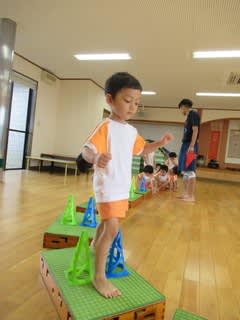 5歳児さんは、バランスをとって落ちないように踏ん張ります。
