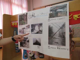 また、昨日よりテレビでも台風15号のニュースが多く放送されていたため、多くの子どもたちは「テレビで見たよ~」という声も聞かれました。
