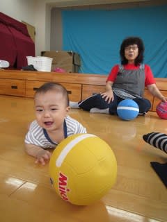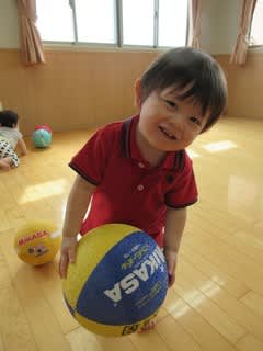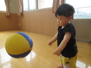 大きなボールを持つ!投げる!一つ一つの動きが