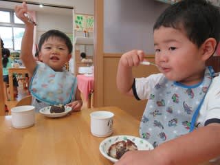 保育園では秋分の日を前におやつでおはぎをいただきました。