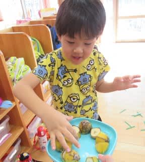 日曜日の今日、皆さんいかがお過ごしですか ずいぶん暖かくなり、外遊びも心地よくなりました カメラを向けても全く気づかず・・・ 園庭でのおままごとは、みんな大好き 職員にもたくさんごちそうを作ってくれます この2人、真剣に…