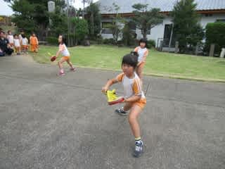 今日は朝から台風6号の影響で、午前中は風も強かったですね。 夕方にもなると、風も凪いでホッ 晴れていたんですが、朝から約束していたゲームをすることになり、みんなで準備開始 紐を通して 首からさげると・・・ 早速ゲーム…