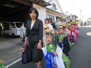 稚児行列に参列した5歳児さん。昨日の担ぎ手とは変わって凛々しく歩く姿立派でした。