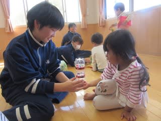 持参してくれたおもちゃは、生徒のみなさんが園児が喜んで遊ぶ姿を想像しながら工夫して作ってくださっており、