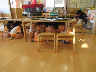 今回は、緊急地震速報エリアメール音を園内で流して実施!!