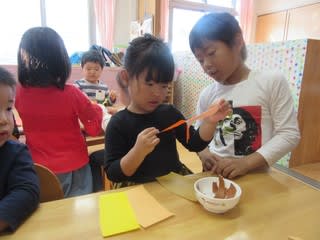 昨日、5歳児クラスでは同法人内の授産施設に施設交流に行ってきました。 往路は路線バスに乗ります。「この券ば取らにゃんとやろ?」 車内は運よく!?座席にも余裕があったので、3人かけで座り、手にはしっかりと運賃が握られていま…