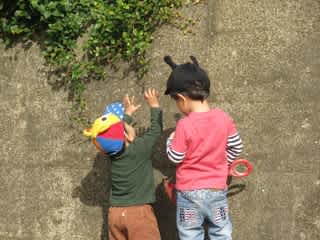 お外で遊びたいな~と、温かい日差しの中園庭に出て遊びました。