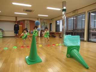 ボールを使って的へ投げたり、キャッチしたりをチームに分かれて行いました。