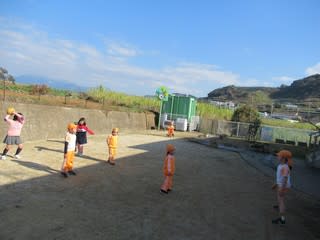 お外遊びだ~!イェーイ🙌と子ども達🎶 お遊戯会に向けての練習を頑張ったり、外で思いっきり遊んだりとメリハリをつけながら元気に過ごしています😉✌️