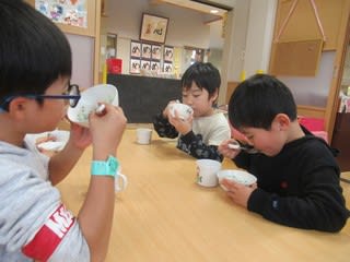 何が入っているかお話を聞いたり、お椀をのぞいてみたり。