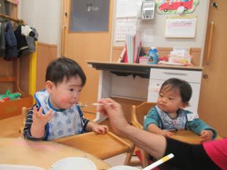 女の子は塗り絵が好きですね。気の会う友達とおしゃべりしながらクレヨンを走らせていました。 1・2歳児のまたまたおやつをパチリ!長い人気のお菓子です。しかし、パッケージが新しいのです。 本当は早くから出ていたのでしょうけど…