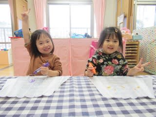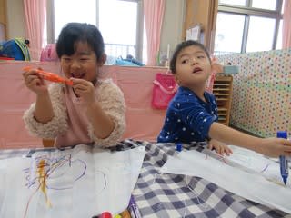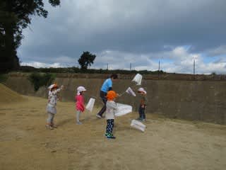1・2歳児クラスでは、手作りの凧あげを楽しみました。