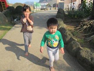 「ジリジリジリ」と火災報知器のベルが 今日は、子ども達に内緒で避難訓練を行ないました 突然のベルにビックリしていましたが… 第一避難 所である、境内にみんな避難してきました 子ども達は、ちゃんと お…押さない は…走らな…
