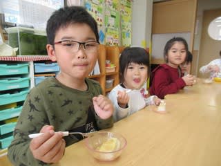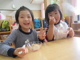 ある日のおやつ。2歳児さんが大きいクラスに遊びに来てくれました!!
