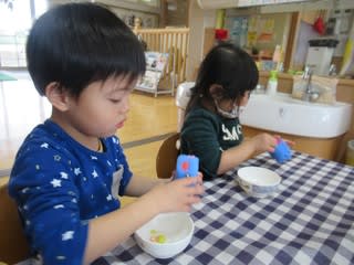 今日は1・2歳児さんが紙粘土に挑戦しました!
