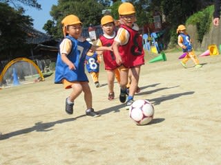 準備運動が終わったら、サッカーのスタートです