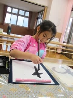 お手本をよーく見て、このくらいの長さかな?もっと短くせんばやった!などお友だちを待っている間に予習・復習もしているんですよ。