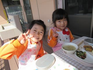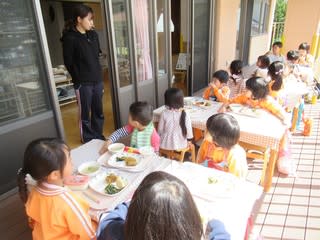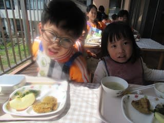 以上児のクラスに混ざって一緒に昼食を・・・💛