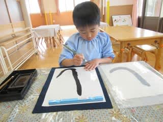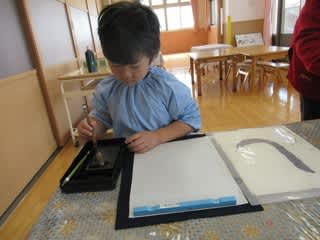どのくらい墨をつけるのかなぁと考えながらいざ挑戦です。