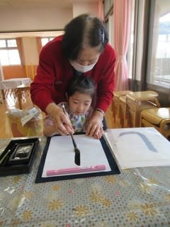 ちょっぴり緊張しながらも習字の先生とお話をしたり、道具の名前を教えてもらったり…