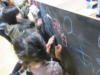 「『白』って漢字、どう書くの?」「こういう字だよ」…さりげなく遊びの中で学び合う子どもたち。