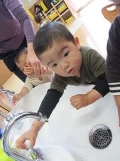 水を触りたいのと葛藤しながらの程よい手洗いの時間・・・(*^_^*)