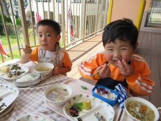 苦手なお野菜にも少しずつ挑戦して、おかわりもたくさんしている子どもたちです