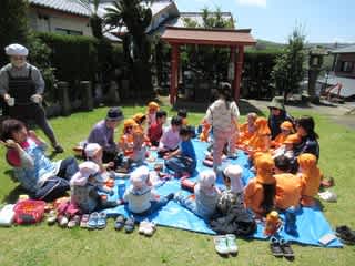 丁度、わくわくお弁当の日でしたので境内で昼食を頂きました(*^_^*)