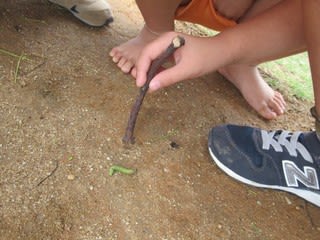 このあと、図鑑で何の幼虫が調べたりした後は花壇に返してあげたようですよ(*^_^*)