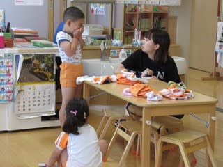 毎日暑い日が続いていますが、子どもたちの大歓声が聞こえてくる季節でもあります(*^_^*) 2階では1・2歳児さんが見晴らしの良いベランダに出てこの時期ならでわの遊びが繰り広げられます! 1階でも3・4・5歳児さんたちの…