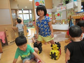 2歳児さんのお部屋を覗いてみると・・・ 初めてのはさみに挑戦していました(^^♪ チョキチョキと言いながら、手をきらないように集中です♪ みんなで切った折り紙は運動会の万国旗に使いますよ お楽しみに~