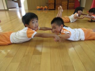 準備運動も仲良くお手々を繋いで「いーち にーい さーん」10秒行いました!