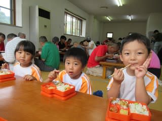 お昼は、利用者の方々と同じ空間で給食のワクワクお弁当を届けてもらって