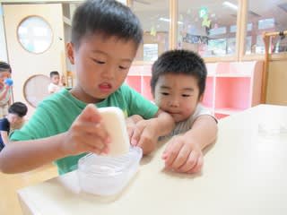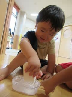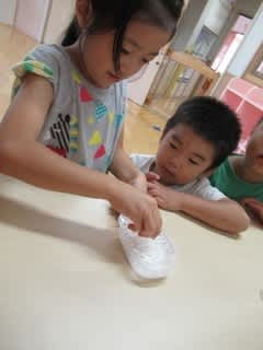 今度泡ブクブク~てして遊ぼうねと話しながら下準備もでき遊ぶ日が楽しみです