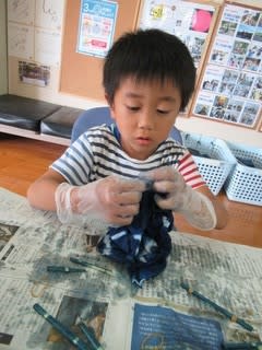こちらは、藍染めの体験中です