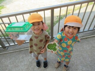 風に吹かれてやってきた木の実では、美味しそうなグリンピースごはんができあがりました