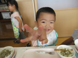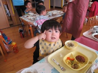 以上児さんと、未満児さんで一緒にご飯・・(*^_^*)