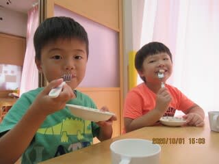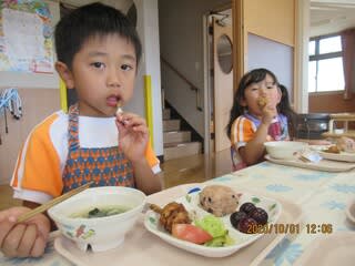 そして給食では「10月も元気に過ごせますように」とお赤飯を頂きました。