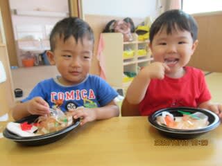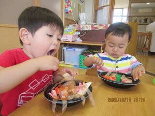 未満児さんも、負けじと早めのお弁当を作りました(*^^*)