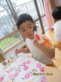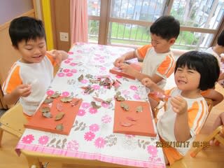 園庭から葉っぱを拾ってきて画用紙にペタペタ貼っていましたよ