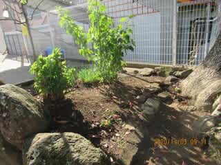 園庭にある花壇の一つですが、南国の印象が強いハイビスカスの根元を見ると…