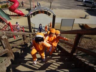 長~い階段をのぼったり、遊具で体いっぱい使って遊んだり、長~い滑り台を滑ったり…