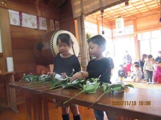 先日、保育園でも拝殿に行って七五三詣りのお祓いをしていただきましたが、その様子をお伝えします。